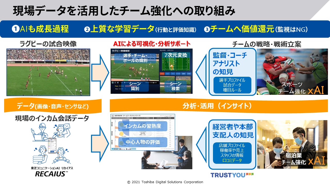 香川:最近、スポーツの世界でも選手の動きをタブレットなどで分析するという動きがありますね。東芝にもブレイブルーパスという社会人ラグビーのチームがございまして、ラグビーの世界では、以前から映像を活用してチームワークを分析する取り組みが行われています。